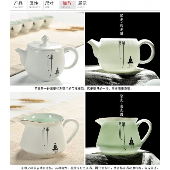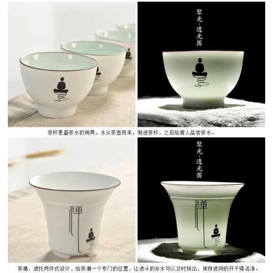 影青玉瓷蓋碗套組-高度9.5cm 口徑9.7cm 容量150ml