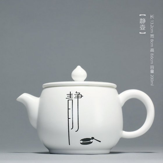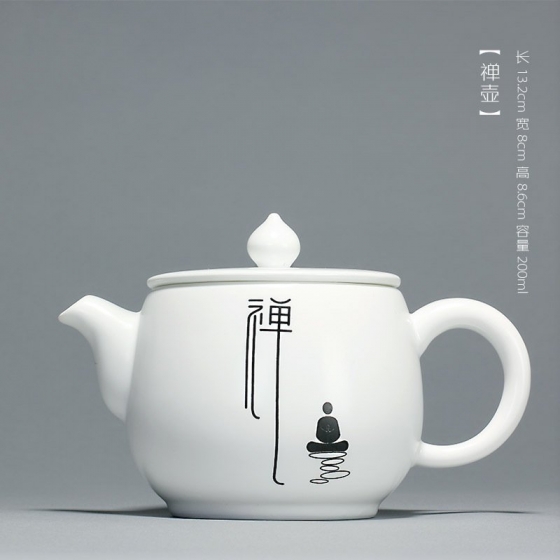 精品陶瓷手繪茶具組 禪風古韻 真言茶壺 定窯亞光功夫茶具 質樸簡約 容量:210ml