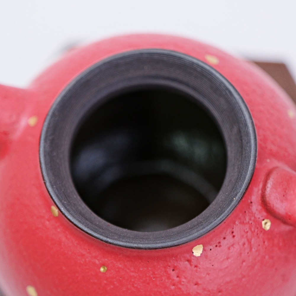 【橘紅釉圓珠壼─180ml】手工陶壺