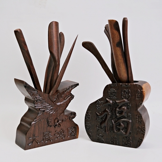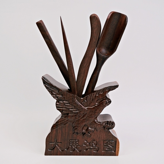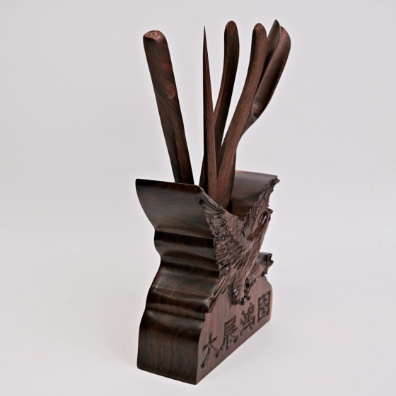 黑檀木大展鴻圖六君子 茶夾 茶針 茶勺 茶撥 收納桶