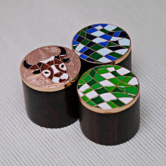 品名:黑檀黑白方格蓋置 / 黑檀綠白方格蓋置 / 黑檀白首牛頭蓋置