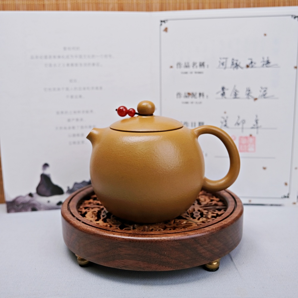 李麗華黃金朱泥河豚西施─230ml 紫砂壼 手工茶壼