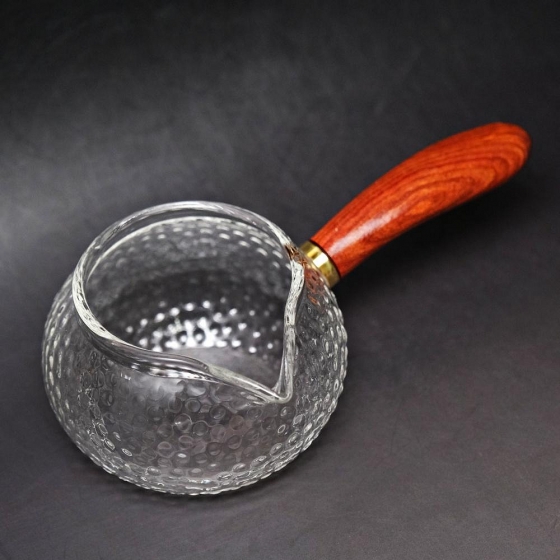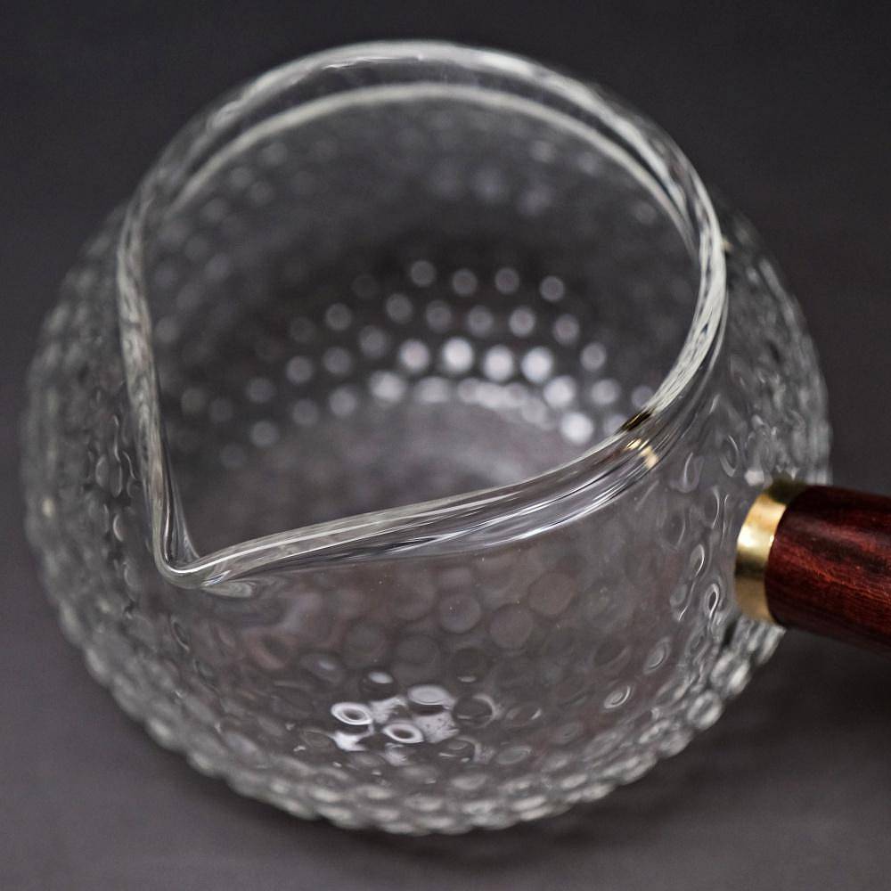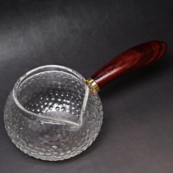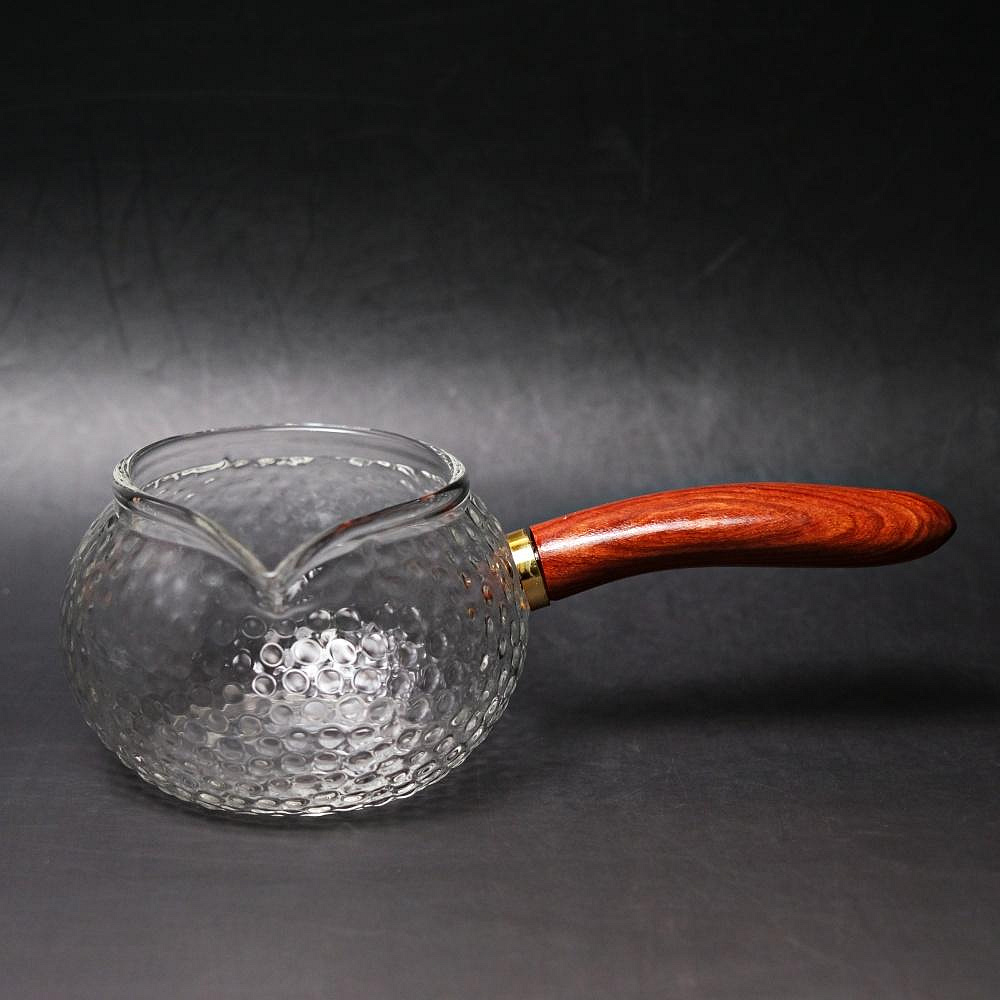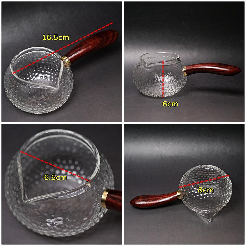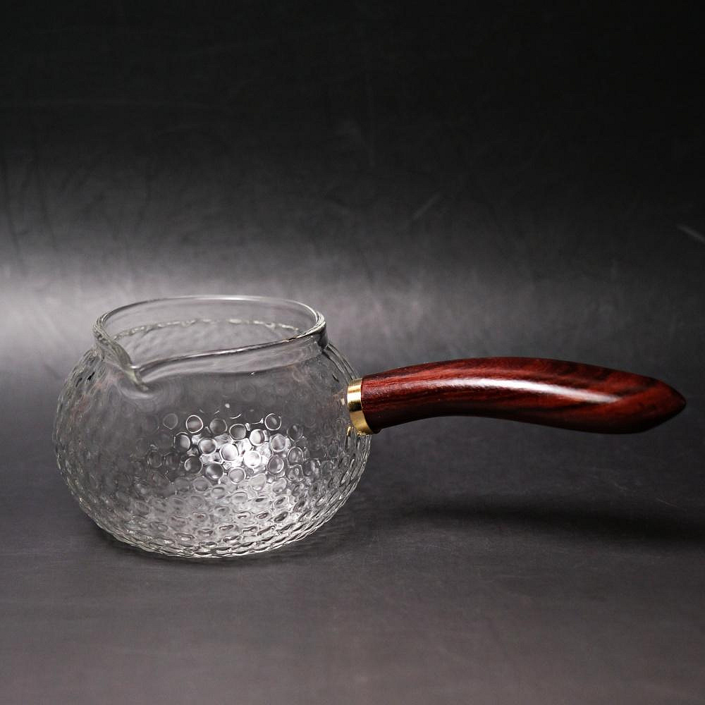 黑檀木/花梨木柄錘目紋側把茶海─250ml 分茶器 玻璃茶海