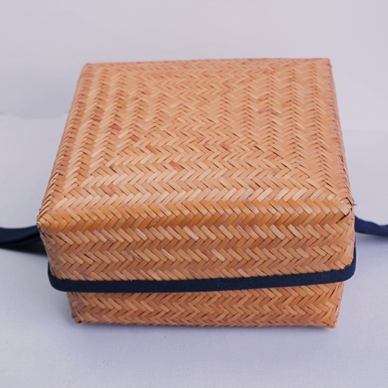 竹編綁繩提籃-正方