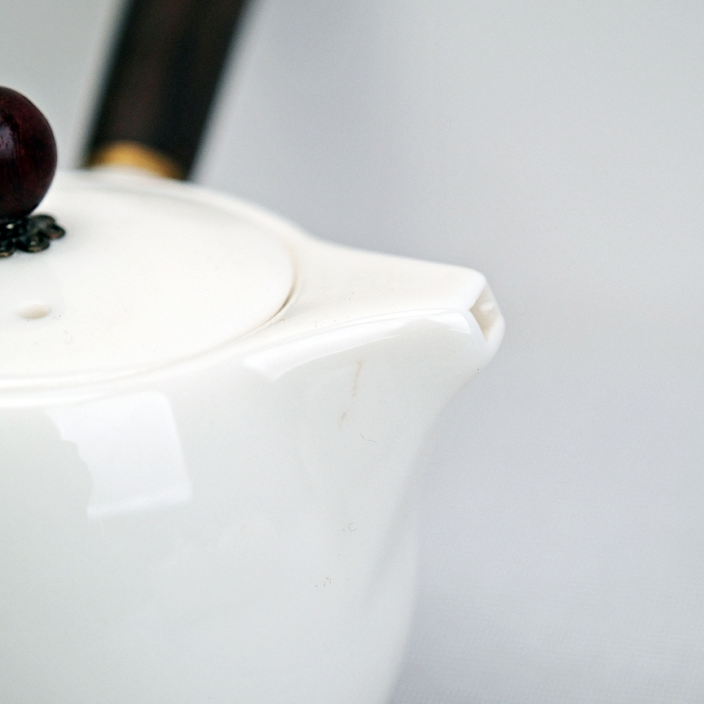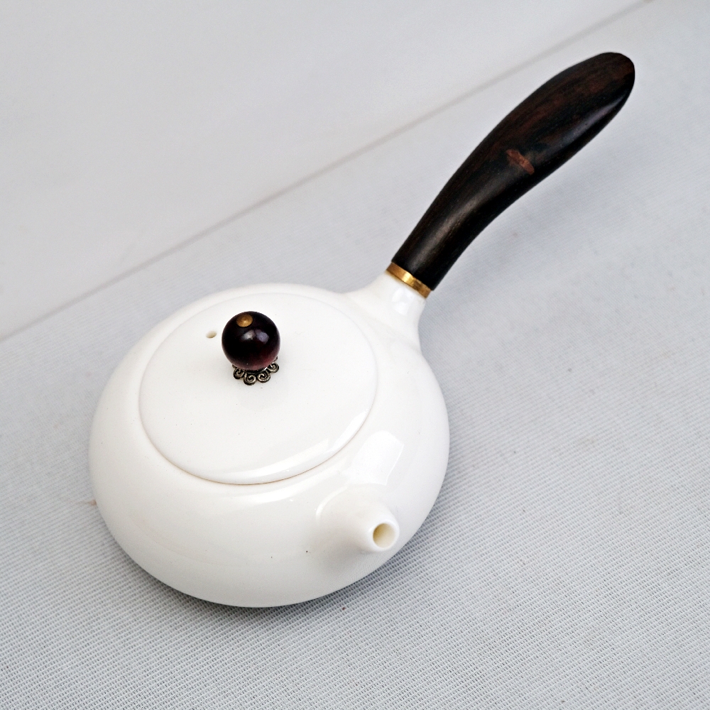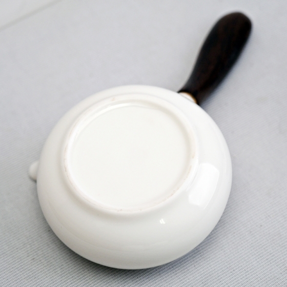 玉瓷側把壺 白瓷黑檀木柄側把壺