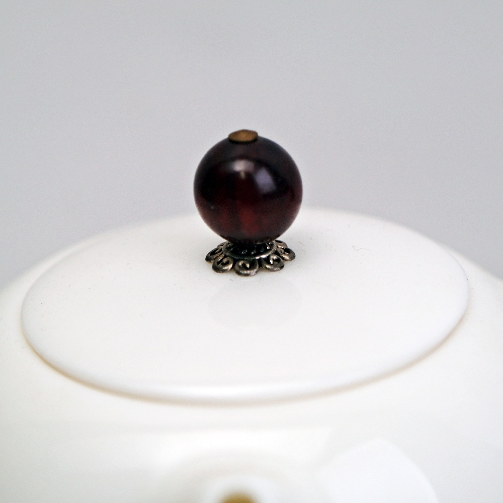 玉瓷黑檀柄扁西施側把壺