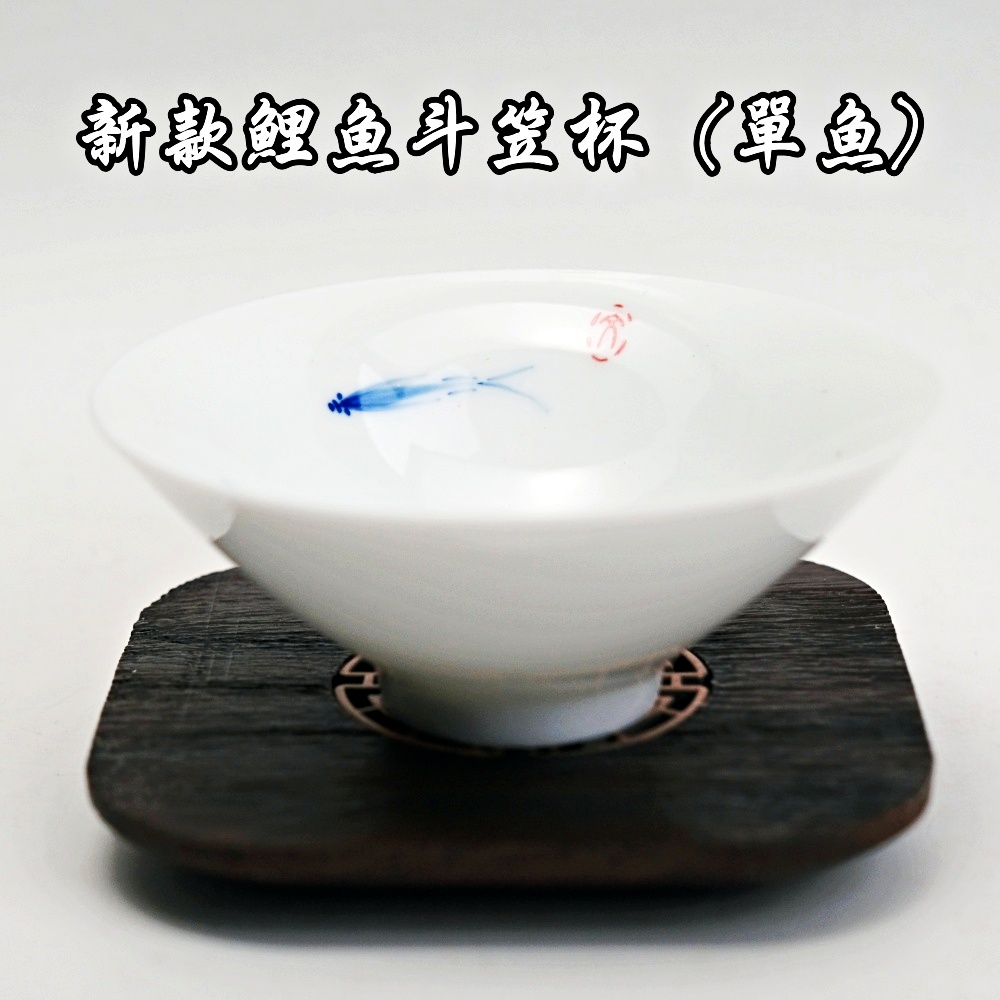 品茗杯 新款玉瓷鯉魚斗笠杯 鯉魚杯