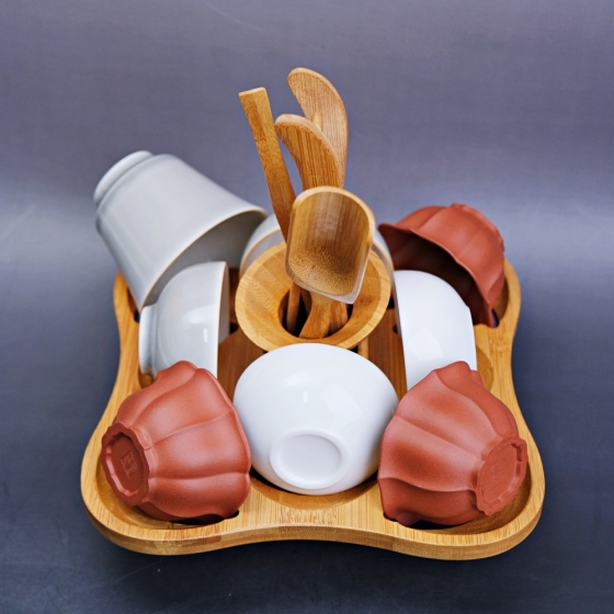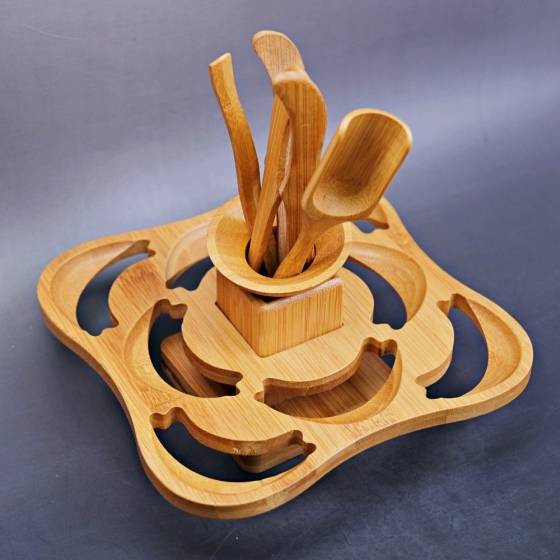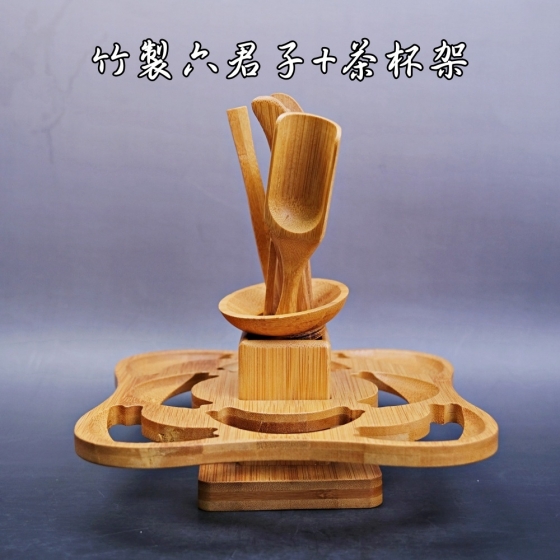 竹製旋轉杯架 六君子茶杯展示架 茶杯收納架 六君子收納架