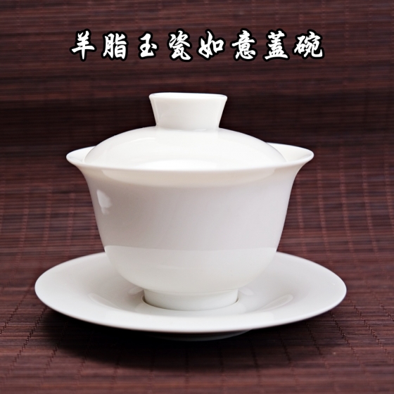 品名:羊脂玉瓷如意蓋碗