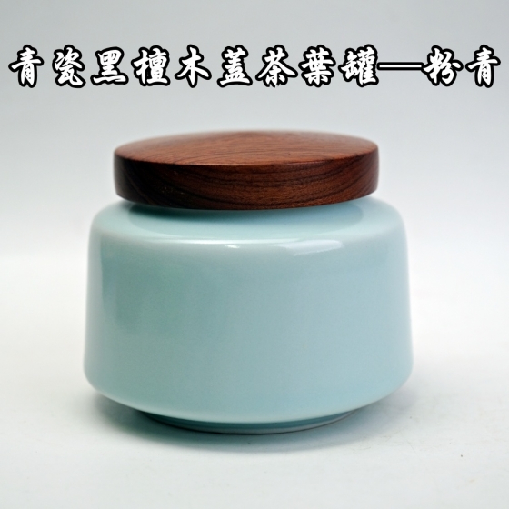 品名:青瓷黑檀木蓋茶葉罐