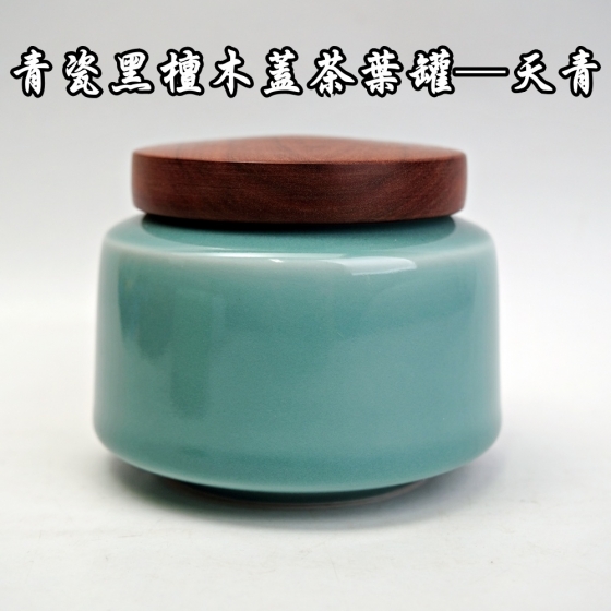 青瓷黑檀木蓋茶葉罐(天青)
