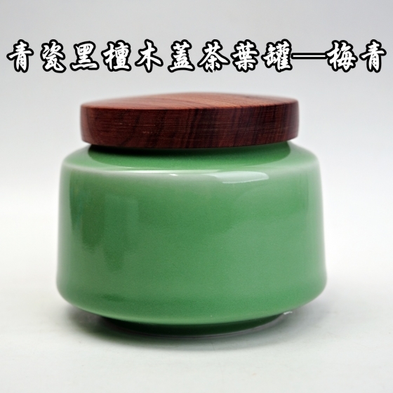 茶葉罐 青瓷黑檀木蓋茶葉罐