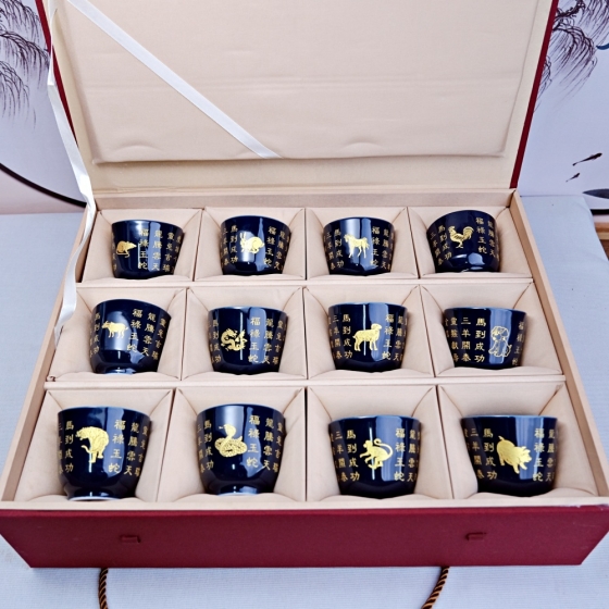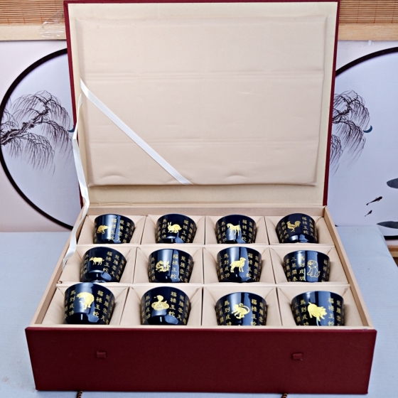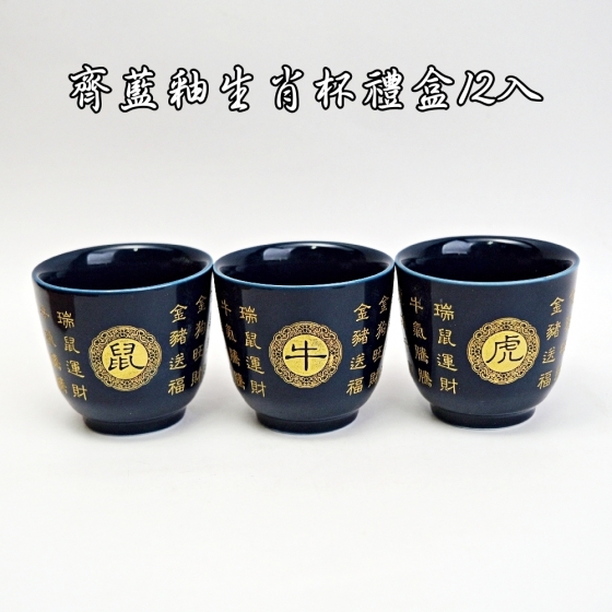 【齊藍釉生肖杯禮盒12入─90ml】茶杯禮盒