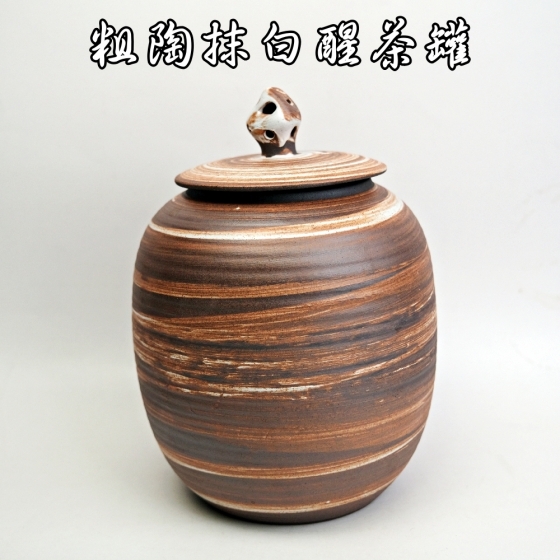 醒茶罐【粗陶抹白醒茶罐】茶葉罐