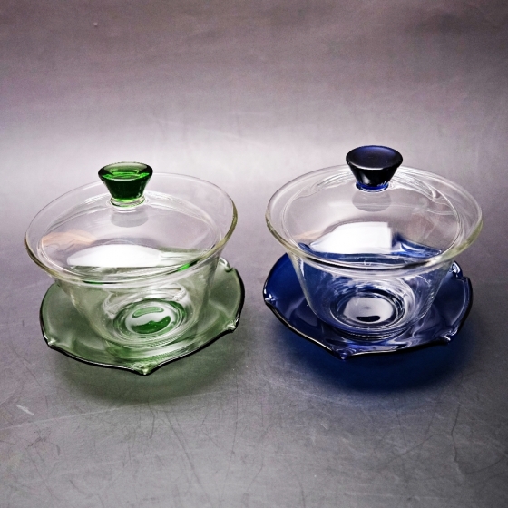 綠碟/藍碟玻璃三才蓋碗─220ml