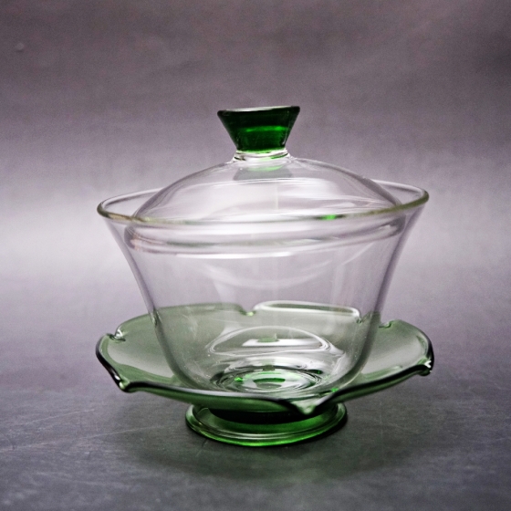 綠碟玻璃三才蓋碗─220ml