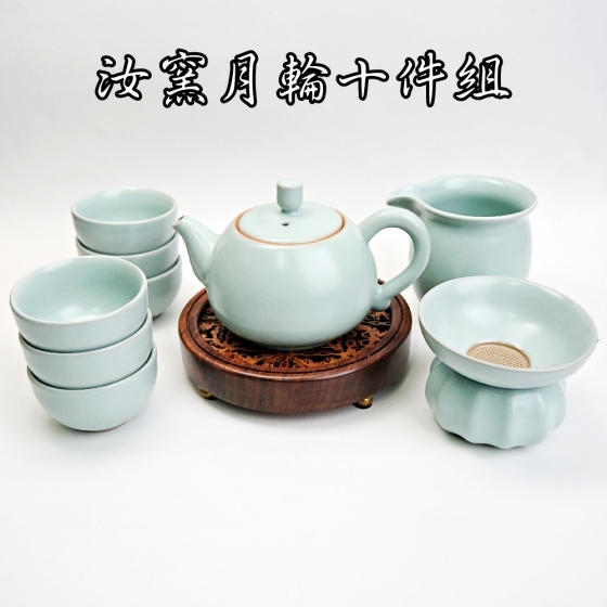 【汝窯月輪十件組】1壺1海1漏6杯 茶具禮盒