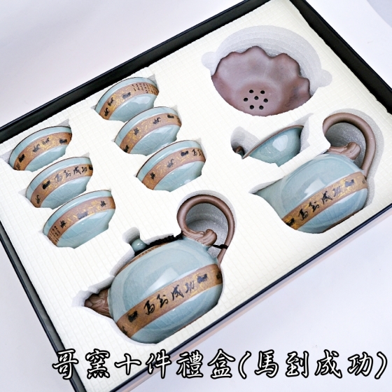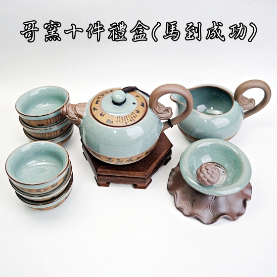 【哥窯十件禮盒(馬到成功)】1壺1海1漏6杯 茶具禮盒