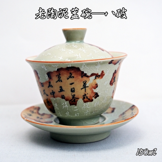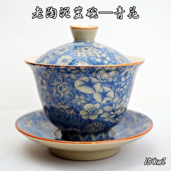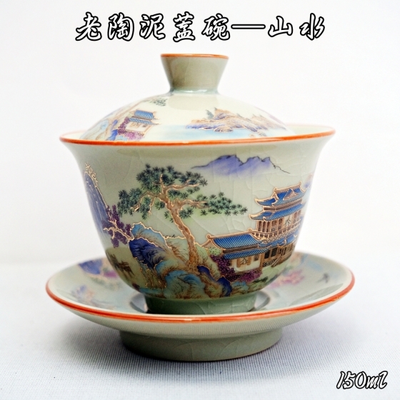 老陶泥蓋碗─八破/山水/青花 蓋碗