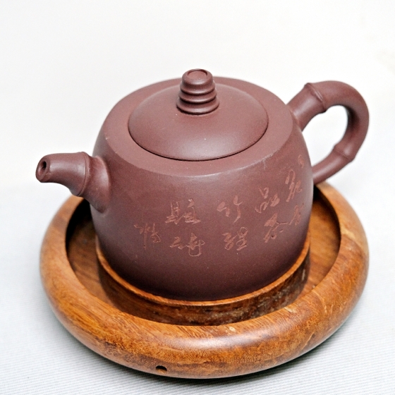 品名:竹段紫砂壼─刻字