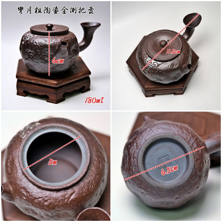彎月粗陶鎏金側把壺 180ml 粗陶茶壼