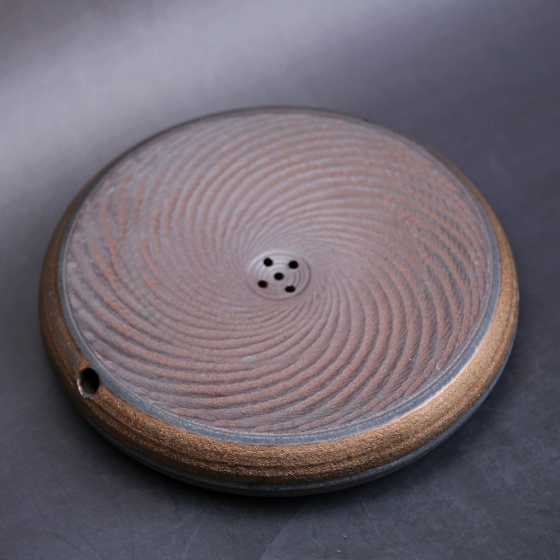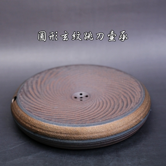 精品粗陶 古早柴燒鎏金壺承 日式圓形玄紋跳刀壺承