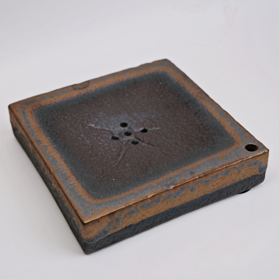 精品粗陶 古早柴燒鎏金壺承 日式復古方形壺承