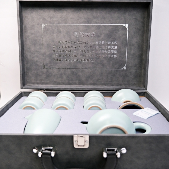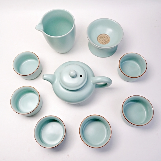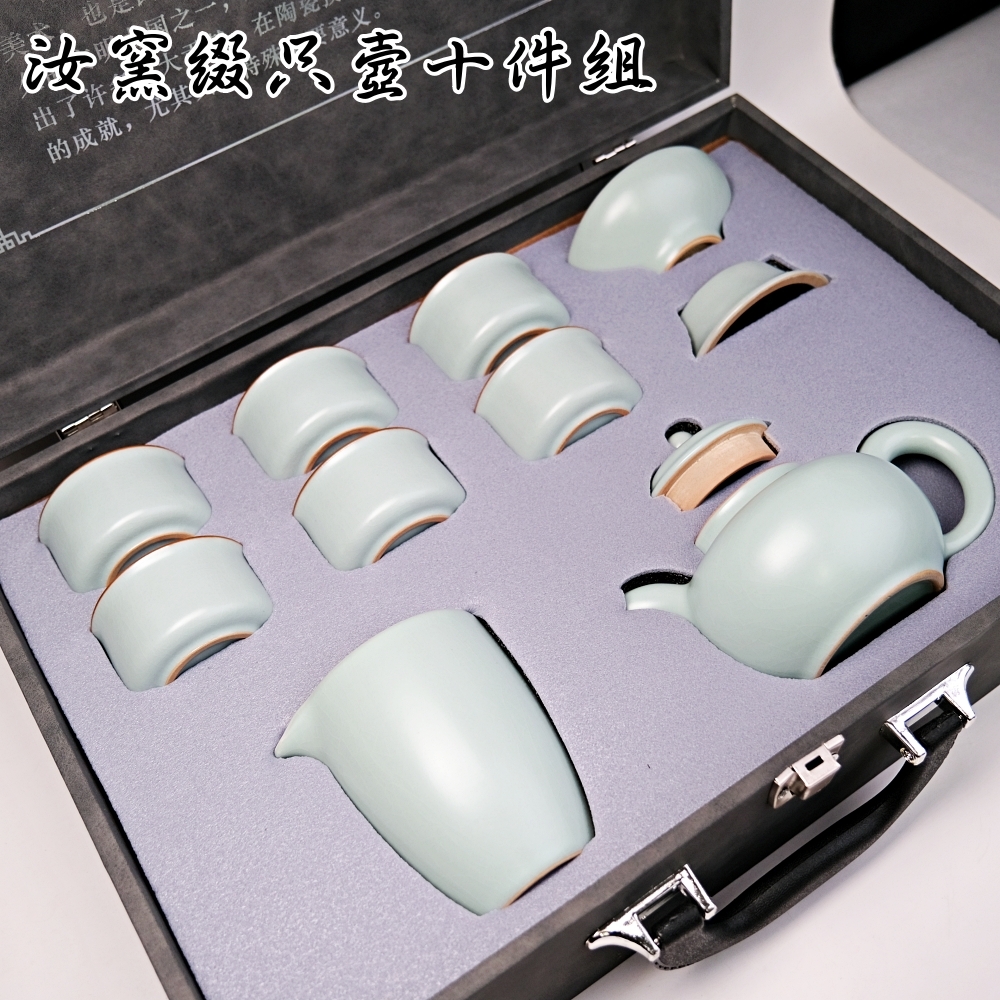 【汝窯綴只壼十件組】1壺1海1漏6杯 茶具禮盒