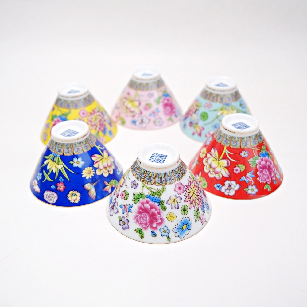 琺瑯彩釉萬花款品茗杯組