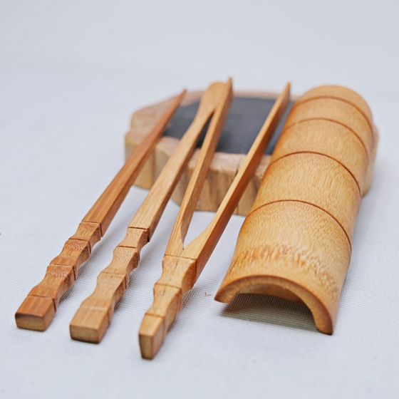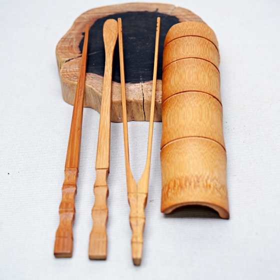 手工碳化竹節茶則四件套組 日式手工竹製茶則 茶針 茶撥 茶夾