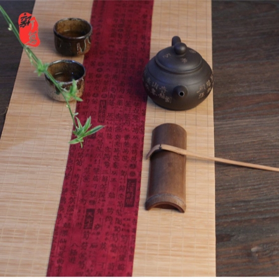 拼布竹茶蓆 180*30cm 棉麻布桌旗 茶席香席 茶道配件 竹席