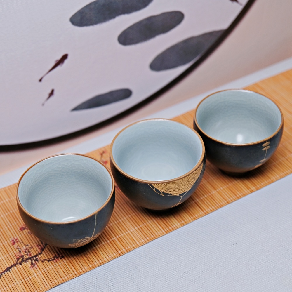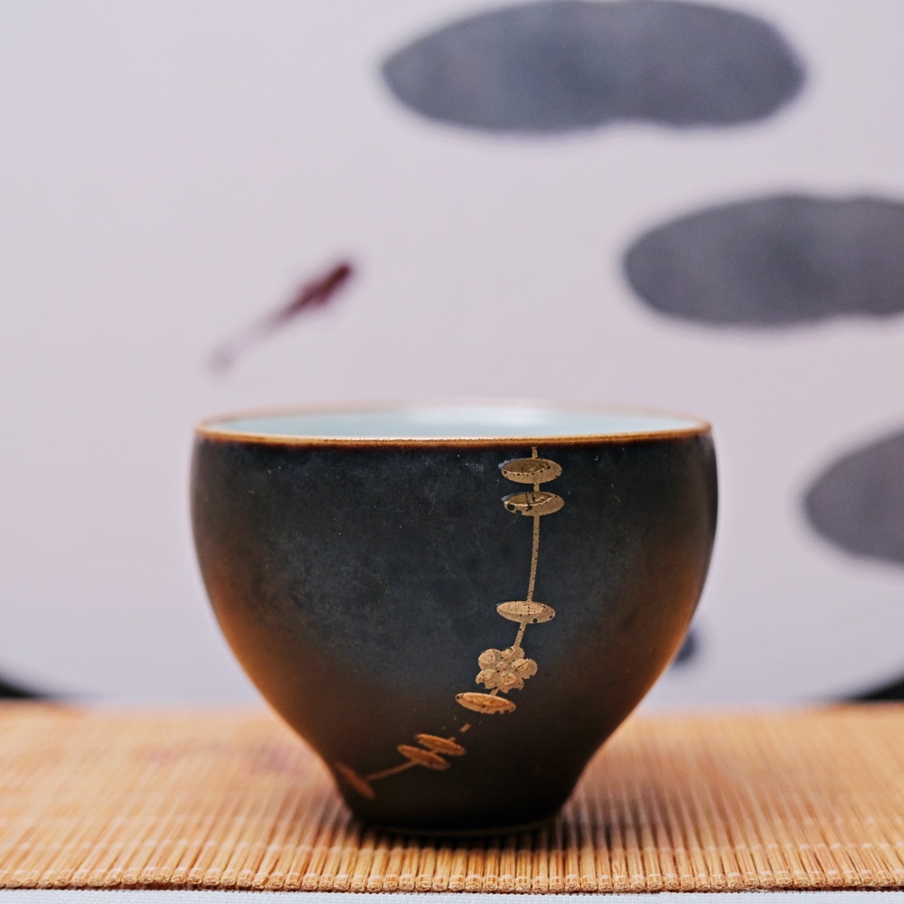銀斑鐵鏽釉 品茗杯 禪風古韻 粗陶品茗杯 淡雅清俗 細緻手作 容量:65ml