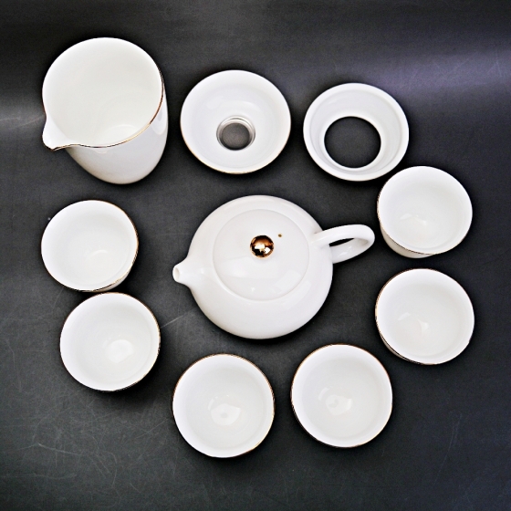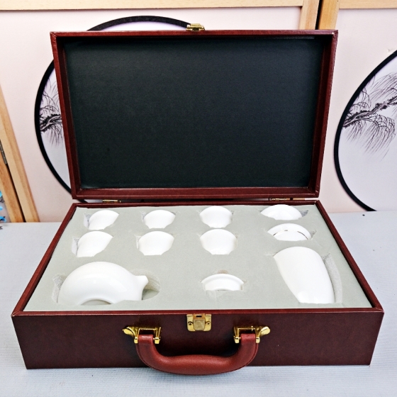 精品羊脂白瓷茶具 西施反口杯10件皮箱組