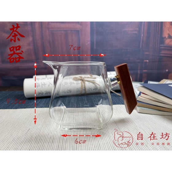 木柄玻璃鷹嘴茶海(天圓地方款)  不燙手 耐熱玻璃公道杯 加厚 茶海 分茶器