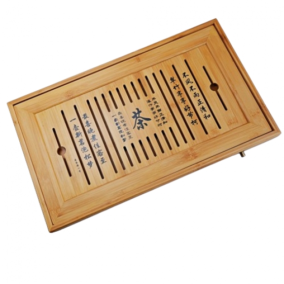 茶盤特色:孟宗竹茶盤,採用經碳化處裡,不開裂不變形,各位茶友可放心使用.本款竹茶盤是融實用、裝飾、藝術于一體的品茗泡茶佳品,它以優質的孟宗竹為主要原料精制而成。創意品位甚高,蘊藉豐富的民族文化和簡約典雅的藝術構想,製作工藝精湛。其過程是將優質的孟宗竹切削成條,堆疊排拼成“竹夾板”,再經刨光、鑽打、組裝、抛光等多道工序,使平凡的竹子成為一件件風格迥異的藝術品,觀之賞心悦目。