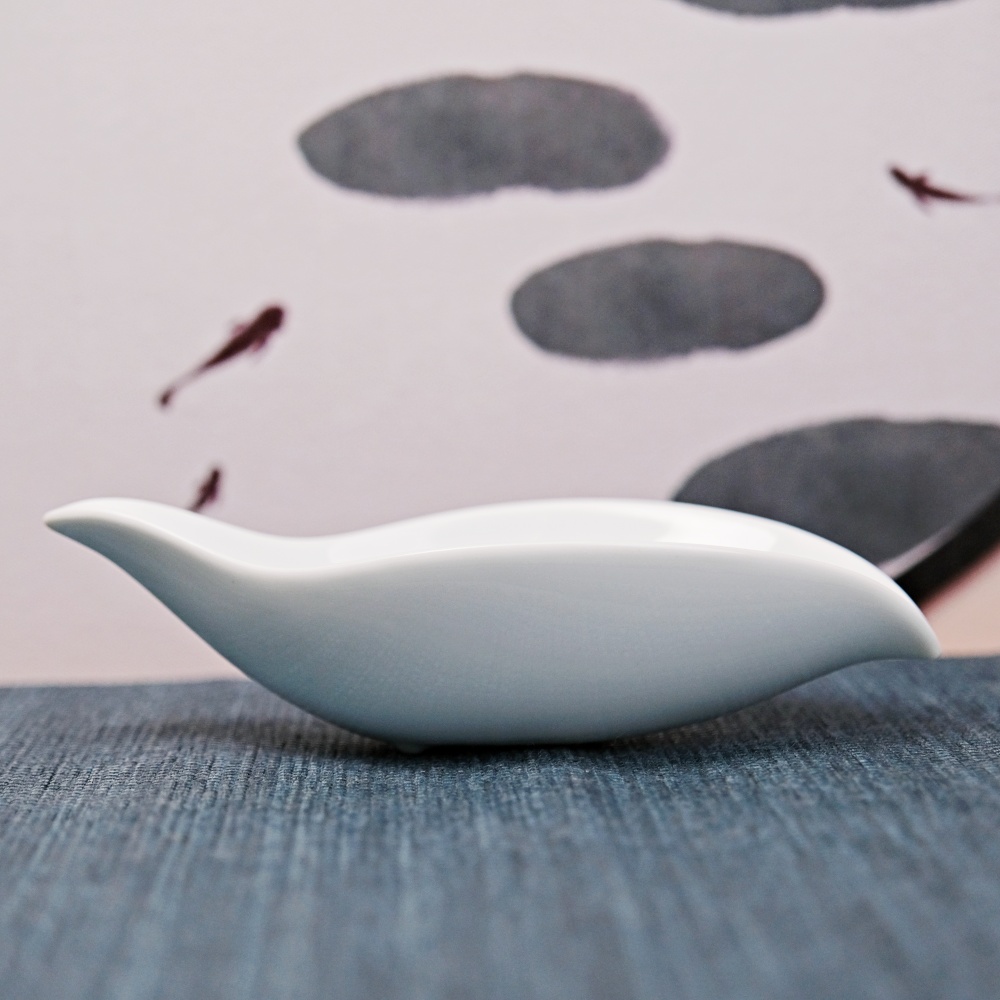 白瓷捲荷尖茶荷 白瓷陶瓷茶荷 功夫茶具配件 大款長約14cm寬約7cm高約3.8cm