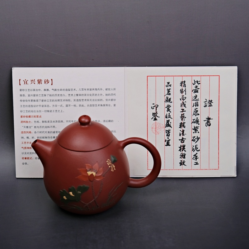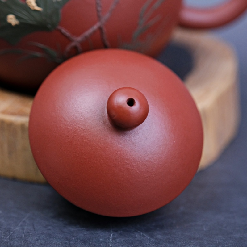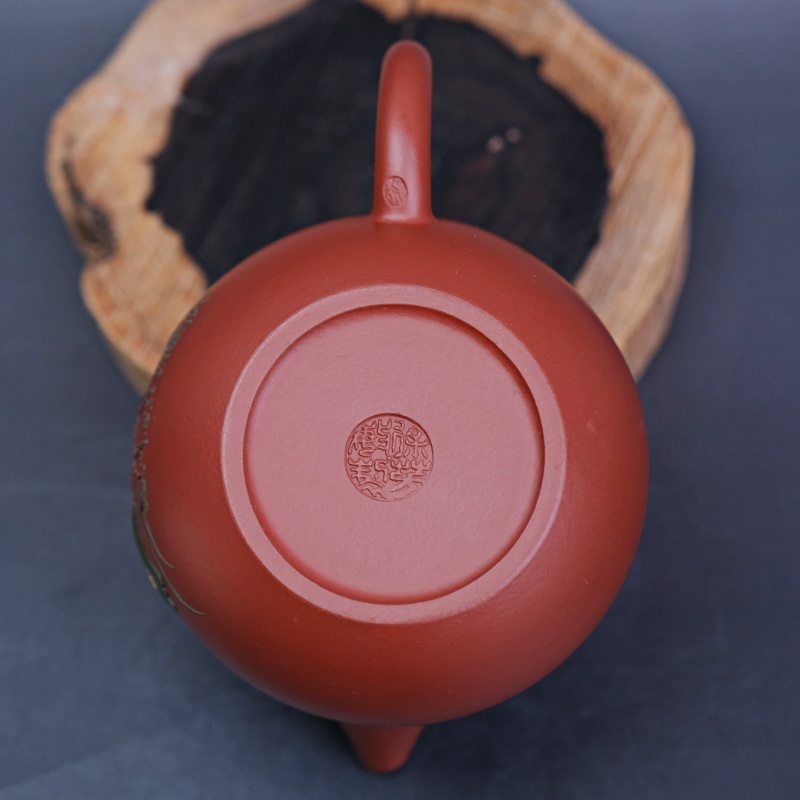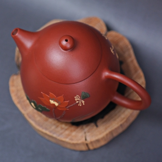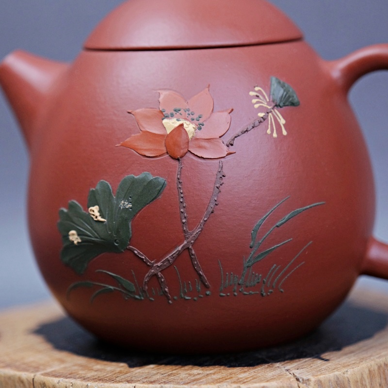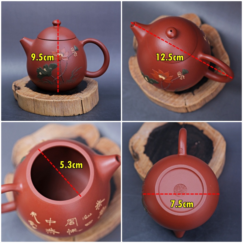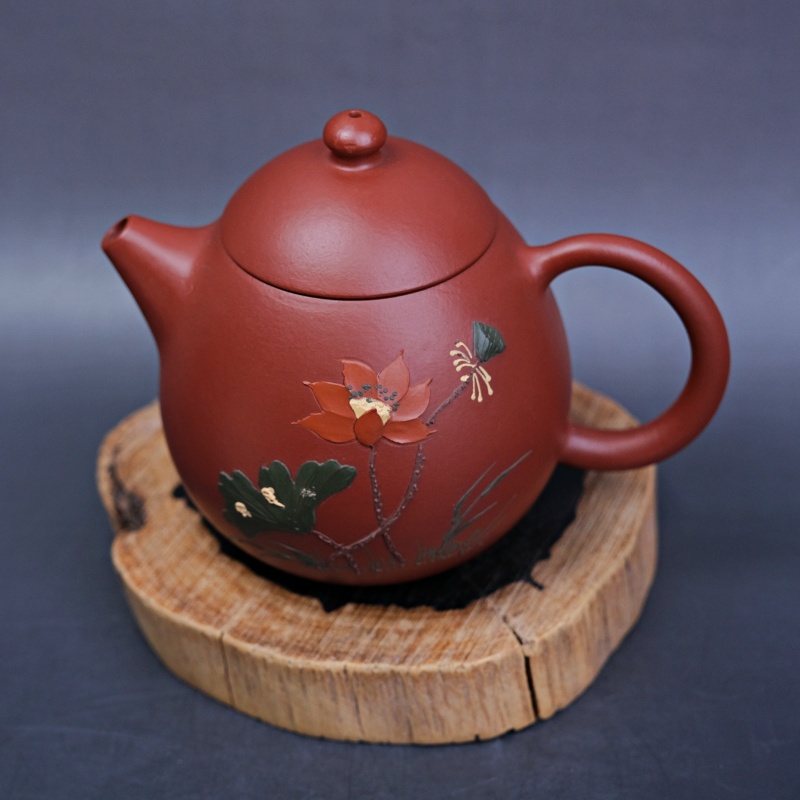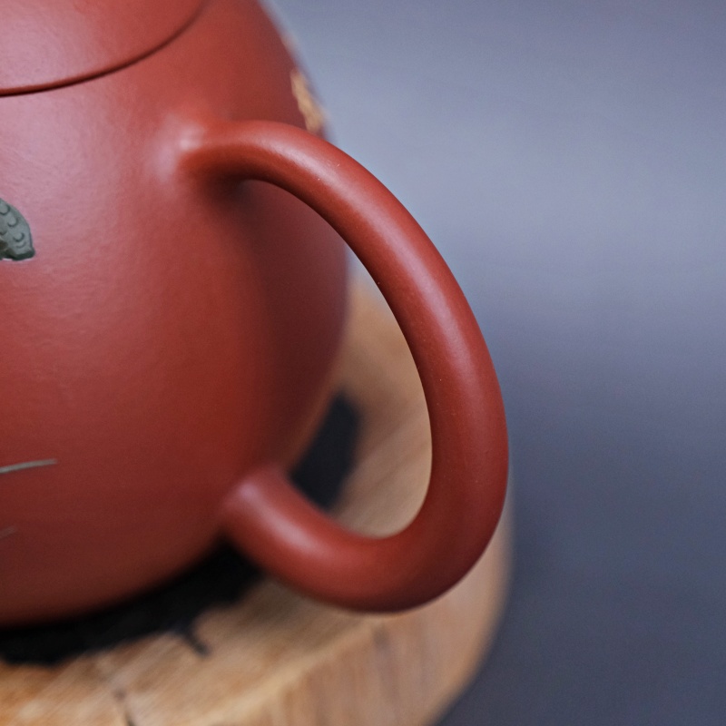 【純手工荷花龍蛋紫砂壺】280ML工藝師徐芳蘭手作 原礦大紅袍