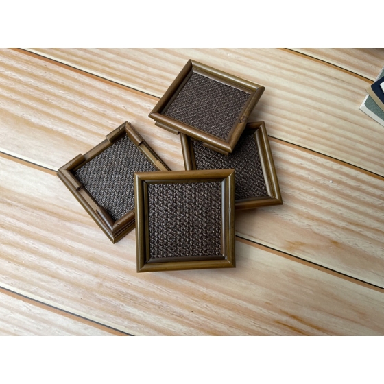 • 【特價分享】復古竹編杯墊漆器 日式禪風四方杯墊