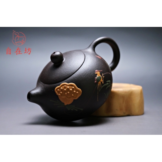 王國望黑金砂黃鸝鳥鳴西施壺-180ml 工藝師手作