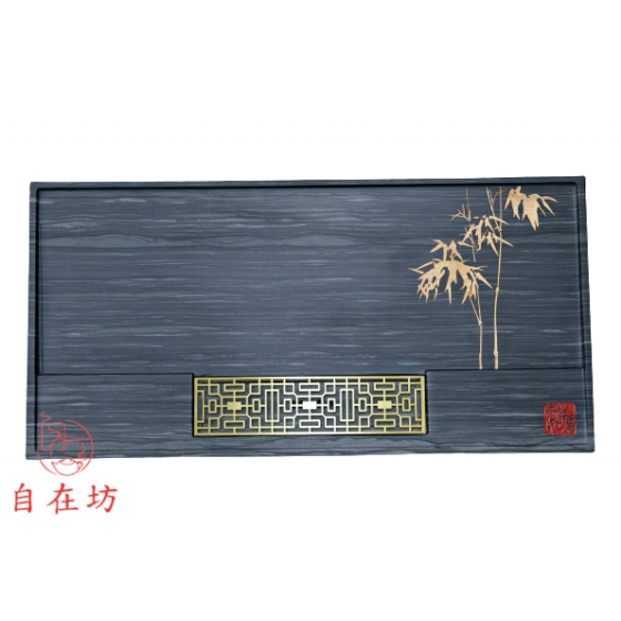 烏金石茶盤 金竹綠紋石款 整塊黑金石精雕