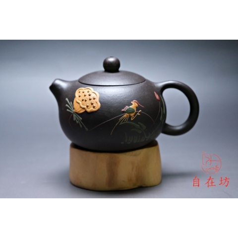 王國望黑金砂黃鸝鳥鳴西施壺-180ml 工藝師手作
