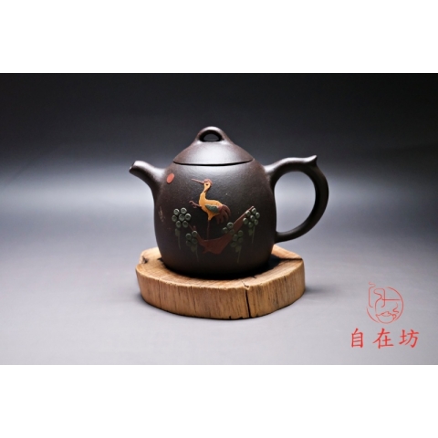 吳文彩黑金砂松鶴秦權壺-300ml 工藝師手作