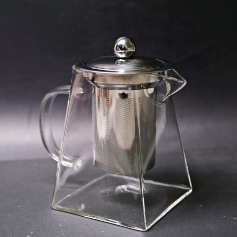 玻璃天圓地方快沖壺500ML 不鏽鋼濾網 茶湯茶渣快速分離