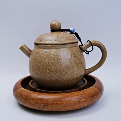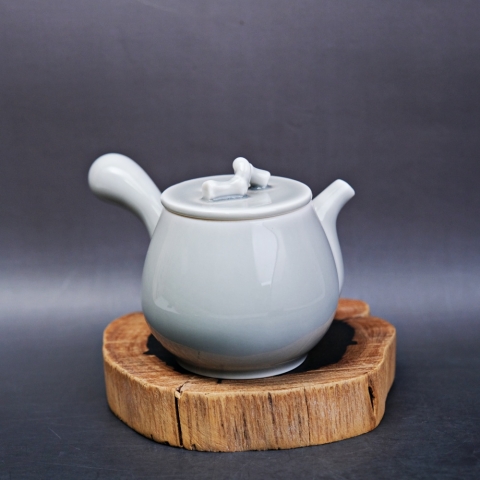 冰灰釉茶壺默竹側把壺
